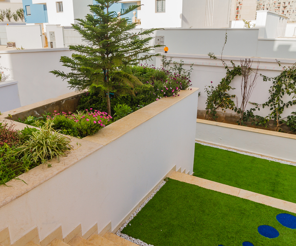 50% de la superficie des résidences est dédiée aux espaces verts afin d'offrir à nos résidents un cadre de vie le plus agréable possible. La gestion de l'environnement selon GIRYAD ne s'arrête pas à la simple implémentation des espaces verts mais se traduit aussi par la récupération et le recyclage des déchets ménagers, la gestion et l'entretien des parties communes et la cohérence de l'ensemble immobilier.